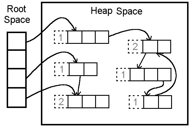 GC 알고리즘에 대해서 설명하기 전에 Root Space에 대해서는 간단하게 스택 변수, 전역 변수 등 heap 영역 참조를 담은 변수라고 생각하면 편하다.